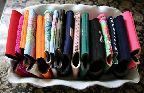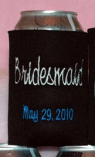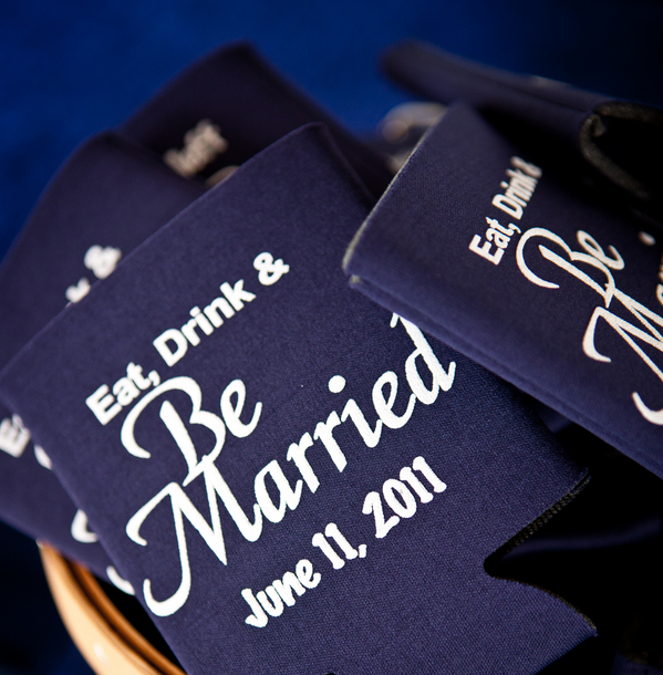 Coozies: These have been becoming increasingly popular over the past few years f- I’ve received them from anything to memorial day trips, bachelorette weekends and rehearsal dinners. It is a great favor for any pre-wedding event. and for the right wedding it can be a favor as well – keeping it appropriate for the event is all about the design (see various examples below). I have a drawer full of coozies that I break out for 4th of July festivities every year, and each one turns into a conversation with guests.