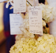 Advice tree: I’ve never seen one in person, but in researching this posting I saw several online. Its a cute idea that is easy for guests to execute: include a notecard with either the guest’s seat assignment or at their actual table, and then have a table placed somewhere in your reception for the guests to go and put their note on your tree. If you have a very large wedding this might not be practical (it would have to be a large tree) but for smaller weddings it is a fun keepsake to keep on display.
