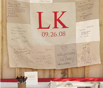 Guestbooks are a great wedding keepsake for the couple, but they usually are pretty plain, even boring. The truth of the matter is that people aren’t always motivated to go find the guestbook because they have to wait in line and come up with a clever note. I’ve found that the more clever/fun the idea, the more likely people want to sign it because they want to participate in the activity.. Lately I’ve noticed a trend emerging for a wedding artwork piece: whether it is a signed photo frame, keepsake box, an advice tree, quilt, photo booth album or a fingerprint tree. I’ve included some examples below.