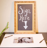 Quilt: I saw this on Martha Stewart Weddings and completely fell in love with it. It would require significant follow up work for the bride (to make or have a quilt made), but it so cute! Each guest could sign their own fabric square (small) or you could provide several posted swatches that groups of people can sign. You could use the blanket or have it framed. A friend of mine did something similar (with college tshirts she wanted to repurpose for sentimental value) and it turned out so well.